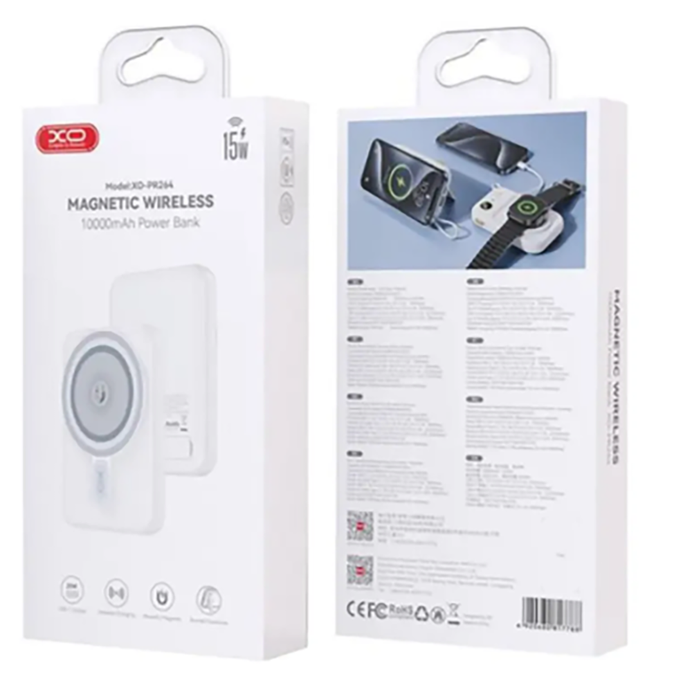 ПБ Powerbank XO PR264 10000 mAh with MagSafe and Holder + PD20W White